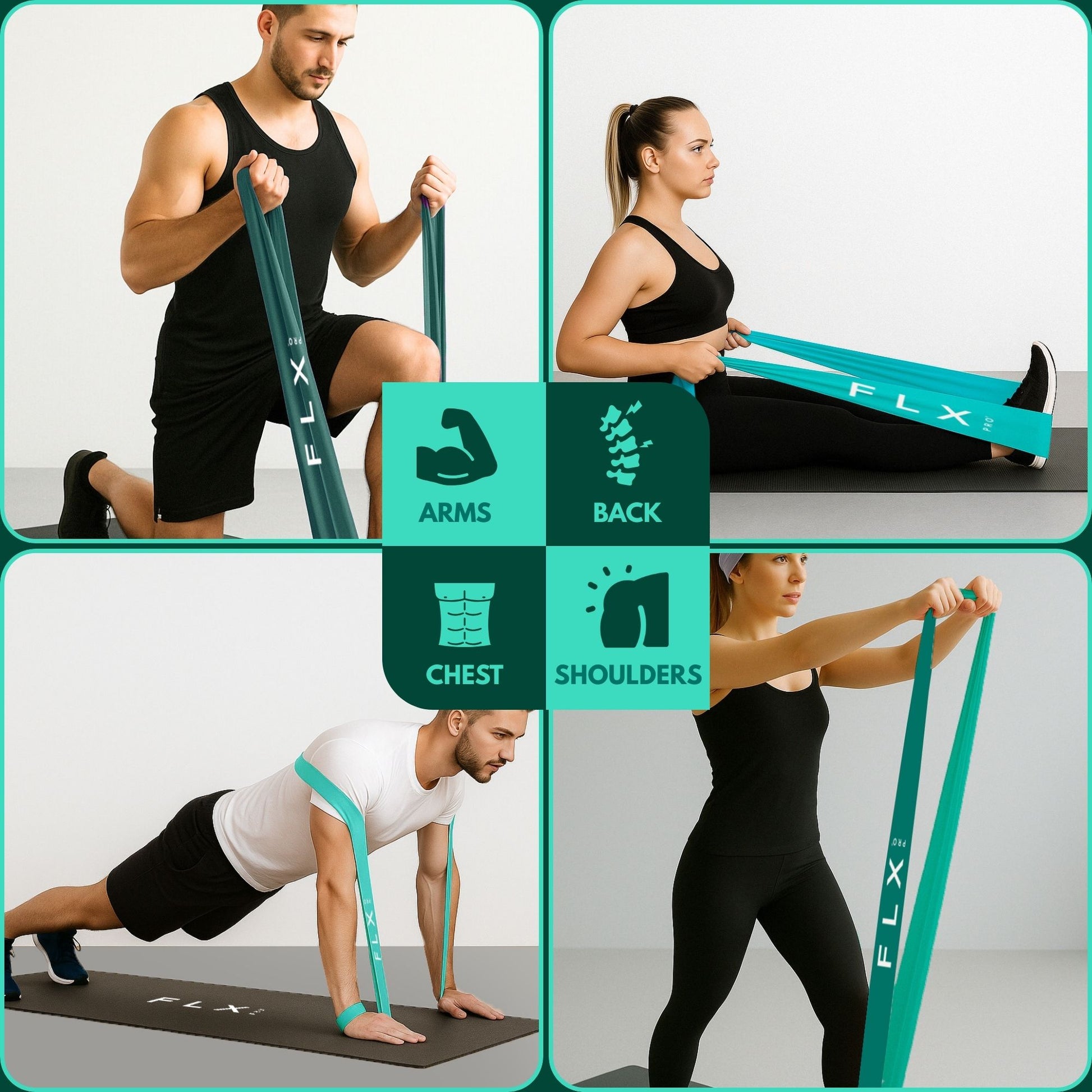 Find your flow and feel the FLX with this premium set of 3 long resistance bands (1.8m length) designed specifically for yoga, Pilates, mobility training, and low-impact strengthening. Featuring three levels of resistance (X-Light, Light, Medium), these bands support smooth, controlled movement for all fitness levels — from beginner to advanced.